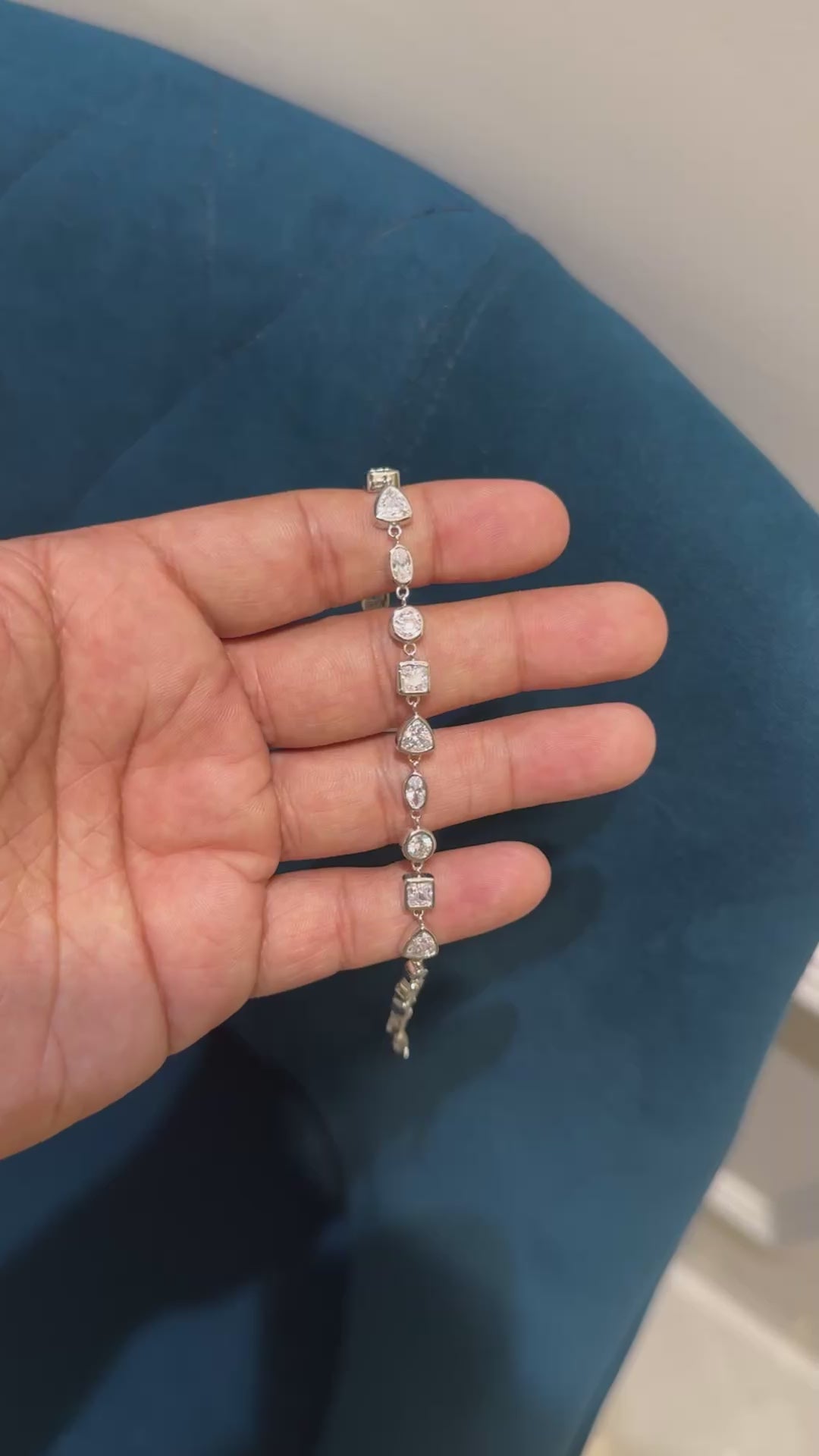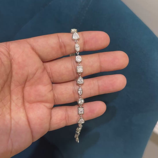This beautiful tennis bracelet is crafted with all fancy shape moissanites, offering elegant shine and sparkle. Each stone is expertly cut for maximum brilliance, making this bracelet a timeless and sophisticated addition to any jewelry collection. Experience luxury and sophistication with this fancy tennis bracelet.