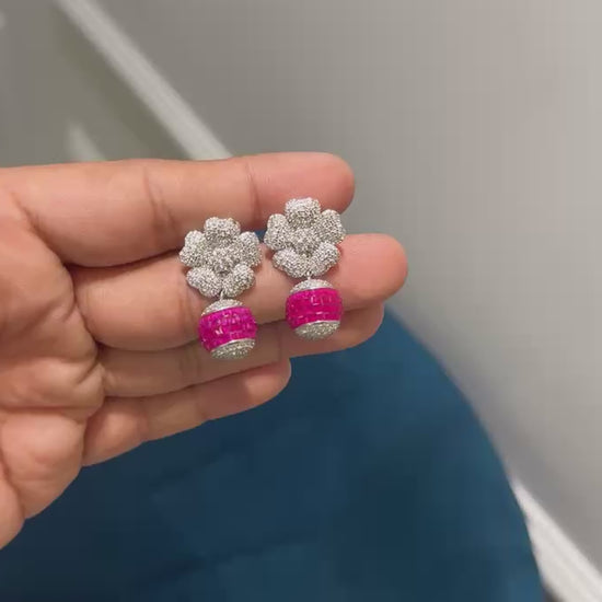 Discover the beauty of Floral Sphere Studs, featuring stunning floral stud design and sparkling ruby moissanites. Elevate your everyday look with the elegance of fine jewelry. These spheres bring a touch of luxury to any outfit, making them the perfect addition to your accessory collection.