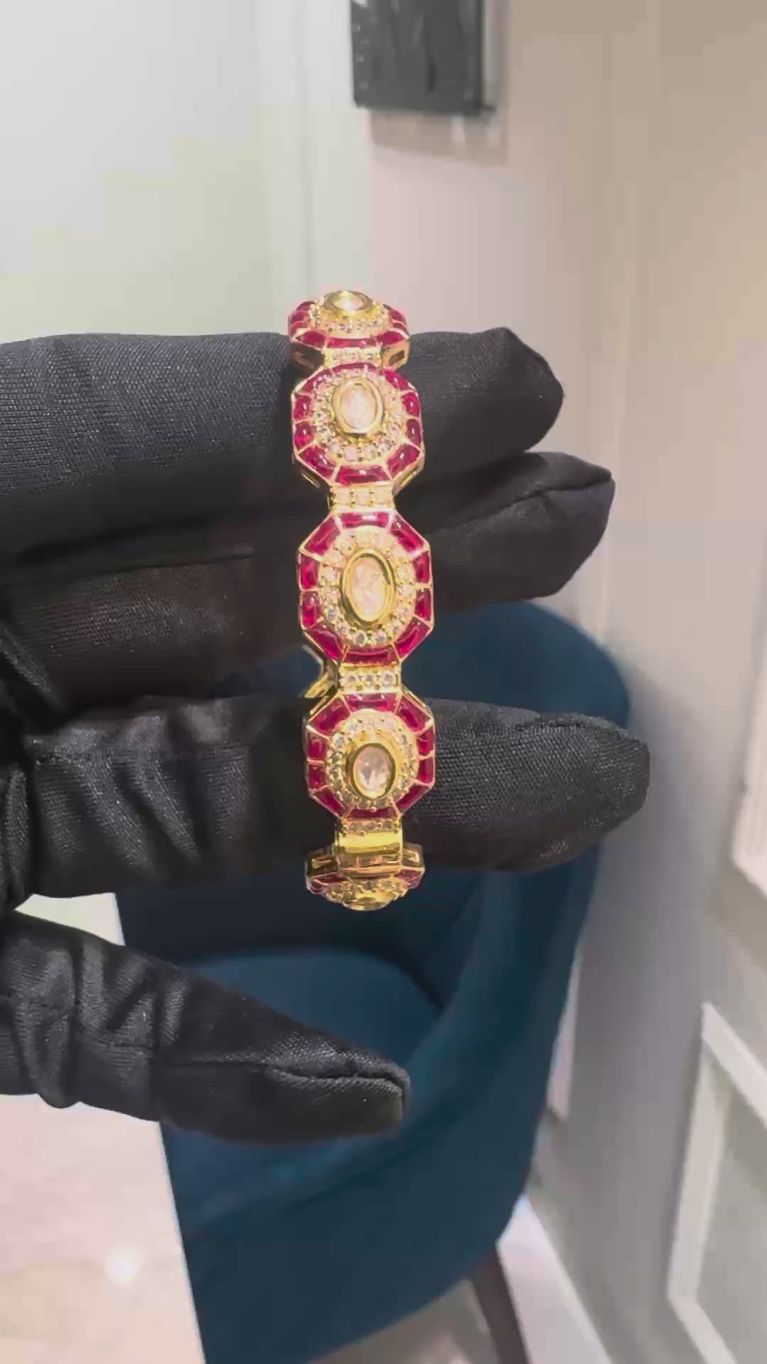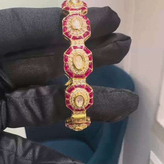 These beautiful heritage bangles are the perfect addition to your jewelry collection. Made with semi-ruby and premium moissanite, they exude elegance and sophistication. Ideal for marriage events, brides, and festive occasions. Elevate your style with these stunning bangles.