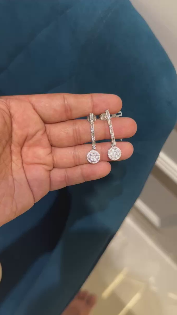 Experience elegance and simplicity with our Long Solitaire Earrings. Crafted with baguette and round-cut diamonds, these earrings feature a solitaire design that adds a touch of luxury to any outfit. Enhance your style and make a statement with these timeless, long earrings.
