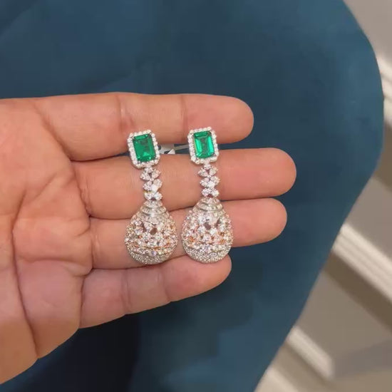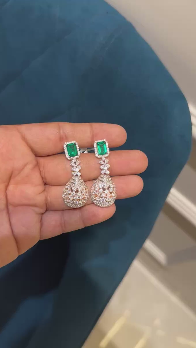 These Luxe ice-drops Earrings combine elegant multi metal colors with green emerald shapes of gemstones, making them perfect for any occasion from classic to cocktail and everything in between. With their elegant, rich, and sophisticated design, these earrings are sure to elevate any outfit.
