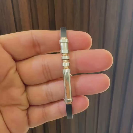 Step up your style with the Mens Luxe Italiano bracelet. Made with premium silicone and 925 silver, this luxury bracelet features dual polished metal for a sleek and sophisticated look. Upgrade your accessories game with this high-quality, Italian made piece.