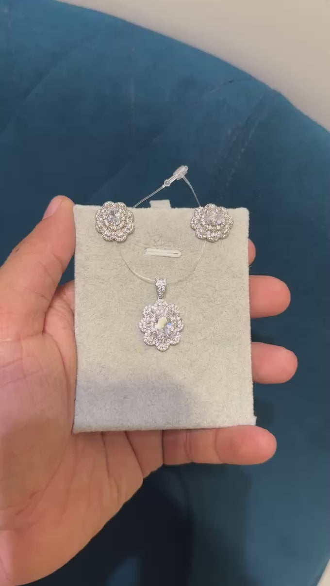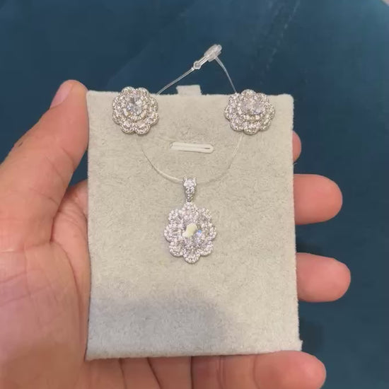 Expertly crafted with an oval solitaire floral design and pave set moisssanite diamonds, the Oval Floral Set exudes timeless elegance. Each sparkling diamond is expertly placed to enhance the overall brilliance of the pendant, making it a stunning addition to any jewelry collection.