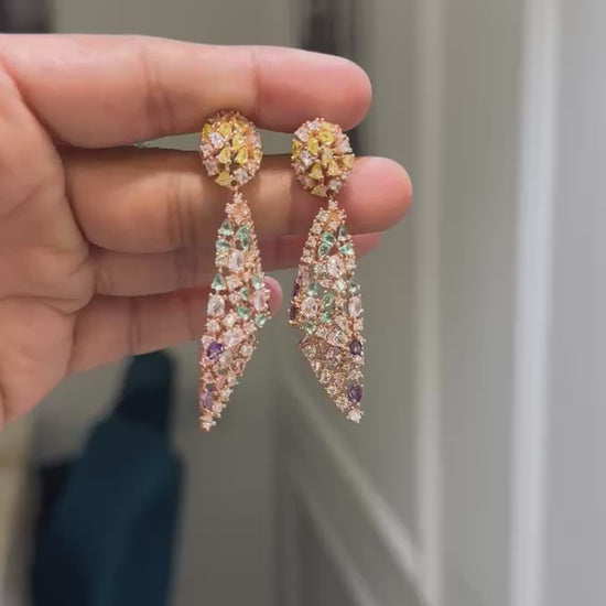 Add a pop of color to your outfit with our Rainbow Earrings. Crafted with multi-color stones, these earrings are perfect for any occasion, from weddings to cocktail parties. Showcase your unique style and turn heads with this stunning and collectible piece.