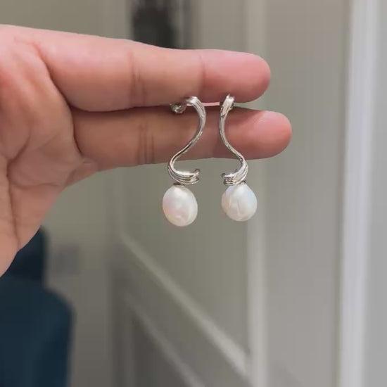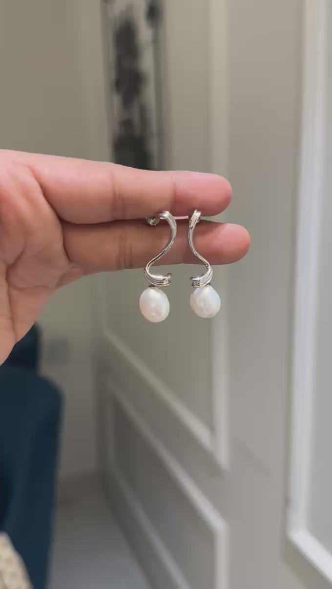 Crafted with natural South Sea pearls, these elegant abstract earrings add a timeless touch to any cocktail attire. The perfect accessory for a classic and sophisticated look.